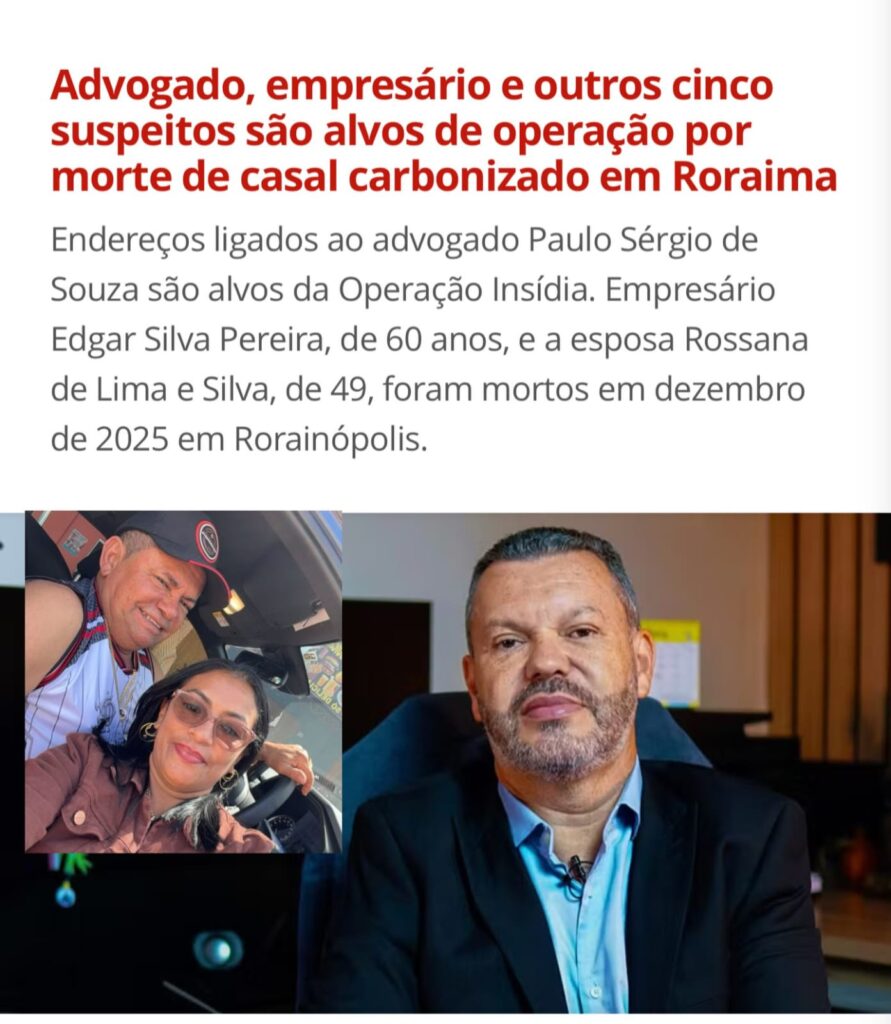 Uma operação deflagrada nesta quinta-feira (17) investiga o assassinato de um casal encontrado morto em dezembro de 2025 no município de Rorainópolis, no Sul do estado. A ação cumpre mandados de busca e apreensão contra sete investigados, entre eles o advogado Paulo Sérgio de Souza e outras seis pessoas suspeitas