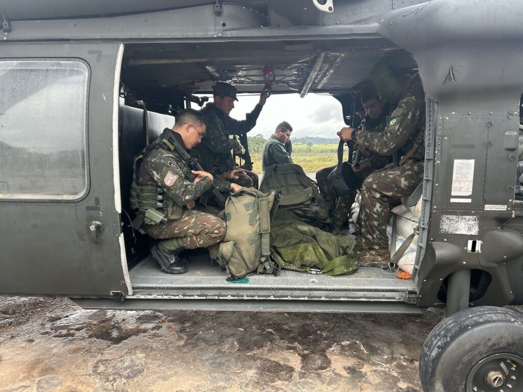 “Foi empregado um helicóptero H-60 ‘Black Hawk’ da Força Aérea Brasileira para o transporte dos militares do Exército Brasileiro, que utilizaram aproximadamente 400 kg de explosivos para efetuar as detonações, reforçando a interoperabilidade e o esforço conjunto entre as forças”, informou o Comando Conjunto Catrimani II.